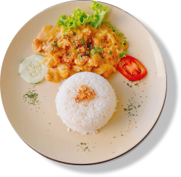 ガーリックシュリンプの豆乳クリームソース仕立て